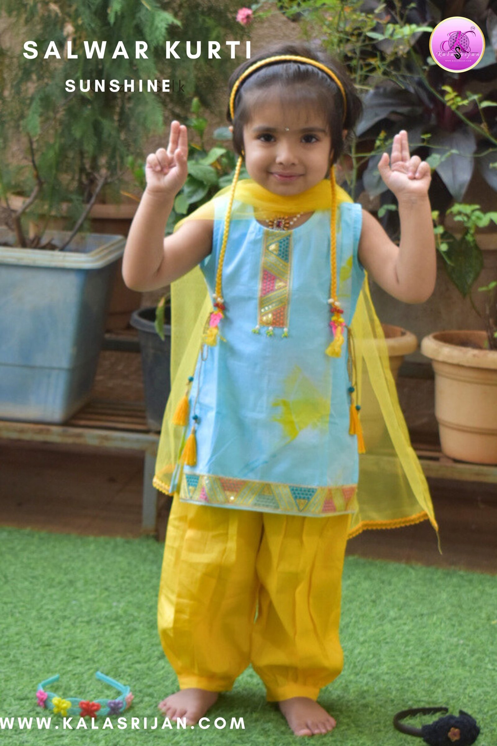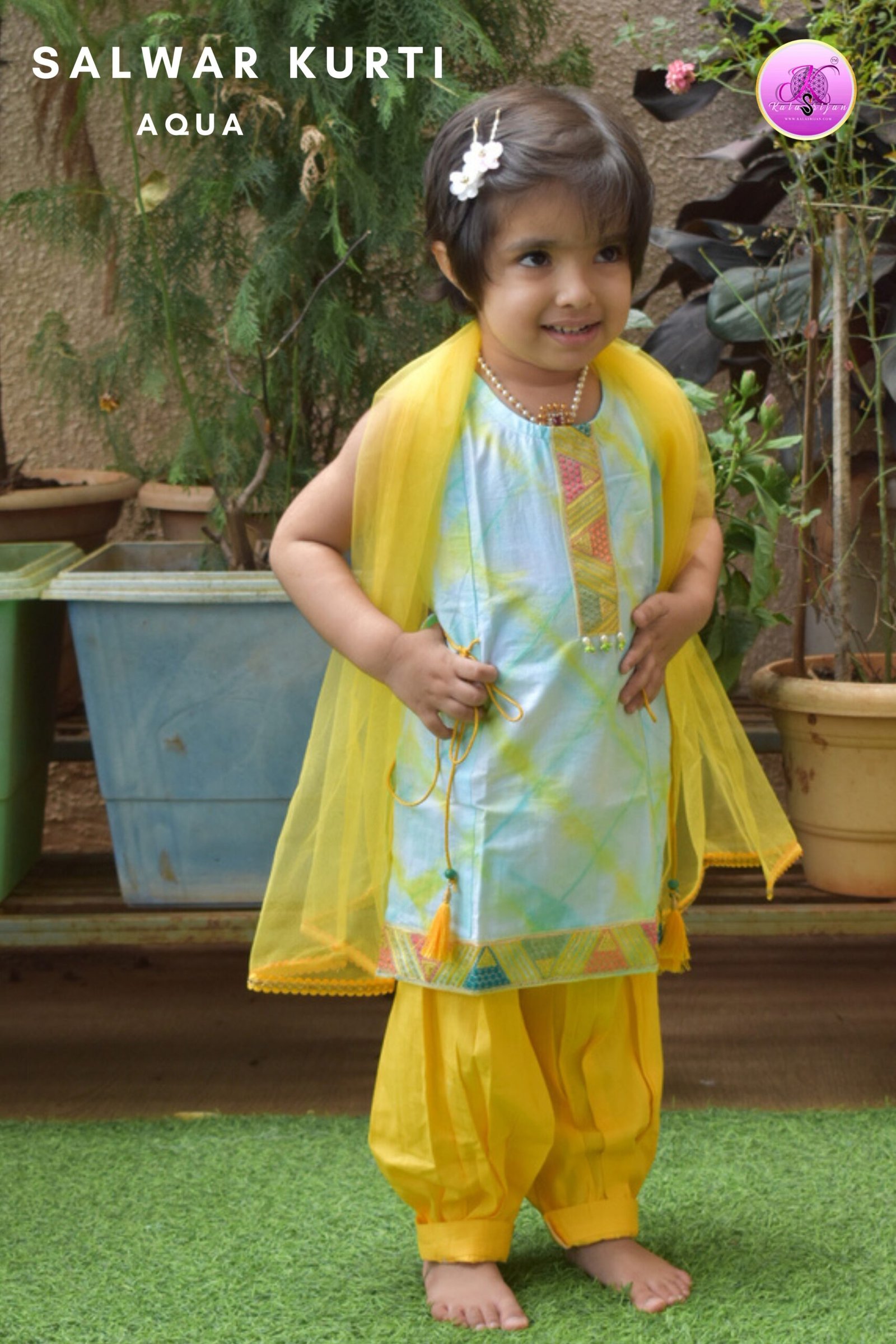 Description: This Salwar Kurti is made of 100% cotton fabric. Girls wear Gorgeous and beautiful Salwar Kurti has beautiful embroidery lace work in pure 100% cotton. These dresses are smooth and comfortable to wear for kids from inner side as well. This Salwar Kurti is a suitable choice when it comes to choosing an ethnic wear or a festive wear for your wardrobe.